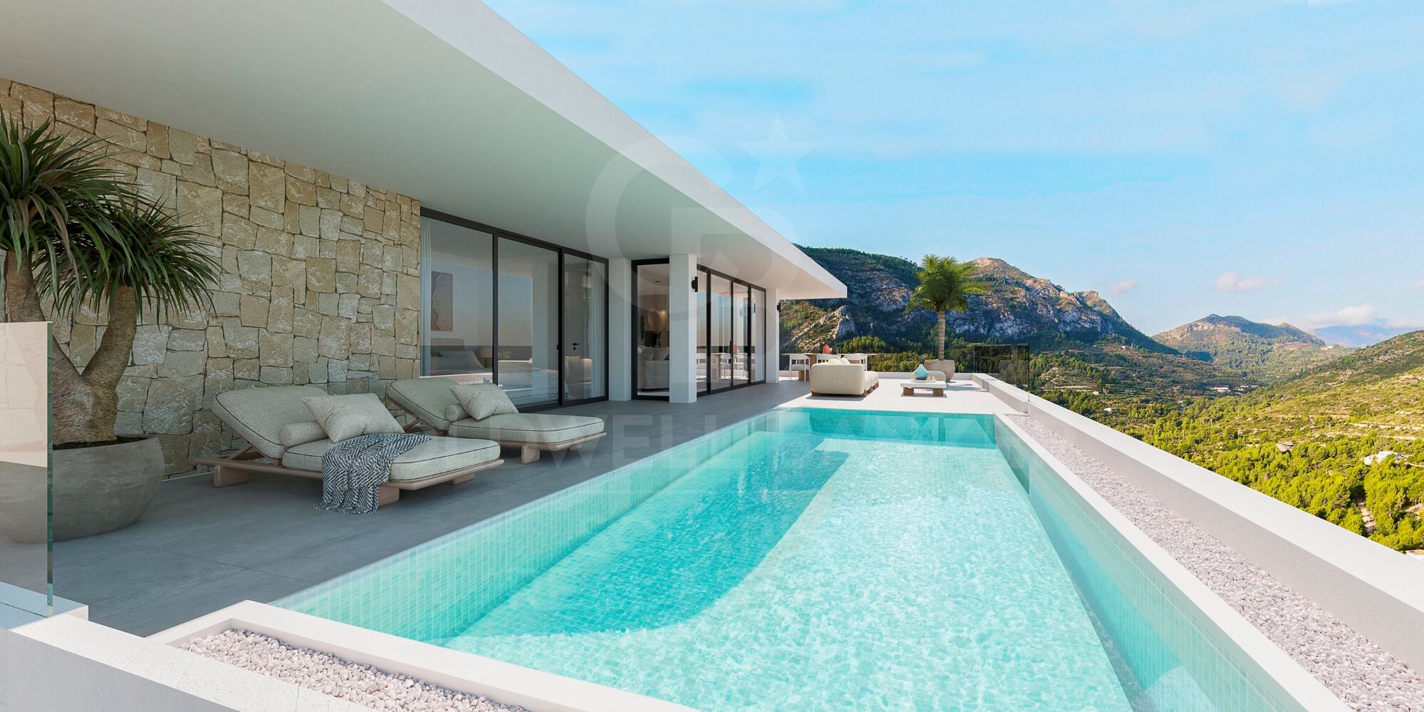 VILLA OCAIVE es una moderna y lujosa casa unifamiliar con parcela privada y piscina, situada en la tranquila urbanización Monte Solana en Pedreguer. Desde la vivienda se disfrutan impresionantes vistas panorámicas a la montaña, el lugar perfecto para relajarse con estilo y disfrutar plenamente del estilo de vida mediterráneo.