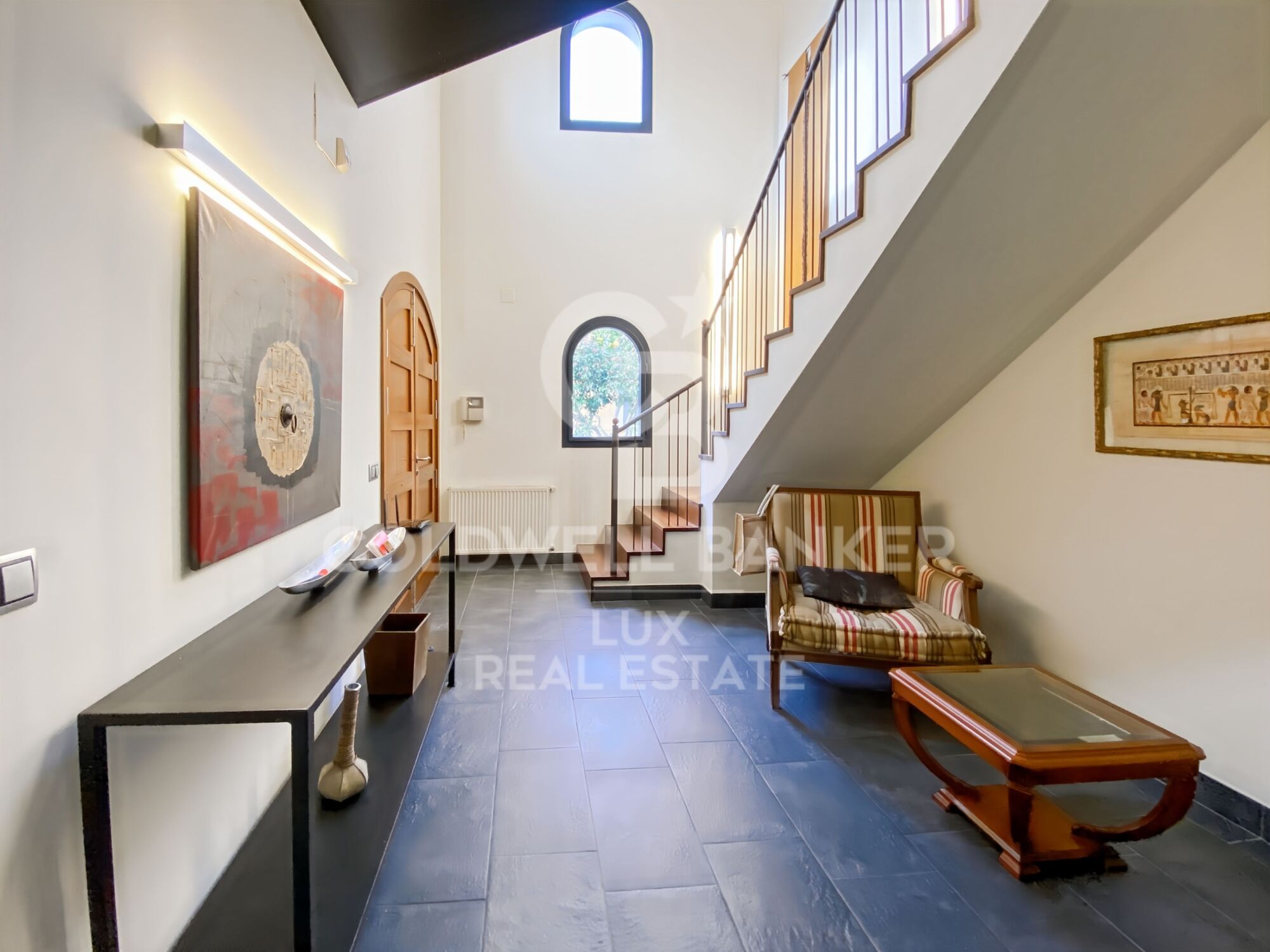 En la planta superior hay una zona de estudio diáfana con vistas ininterrumpidas al salón, mientras que la suite principal cuenta con vestidor, baño con bañera de hidromasaje y ducha, y terraza privada.