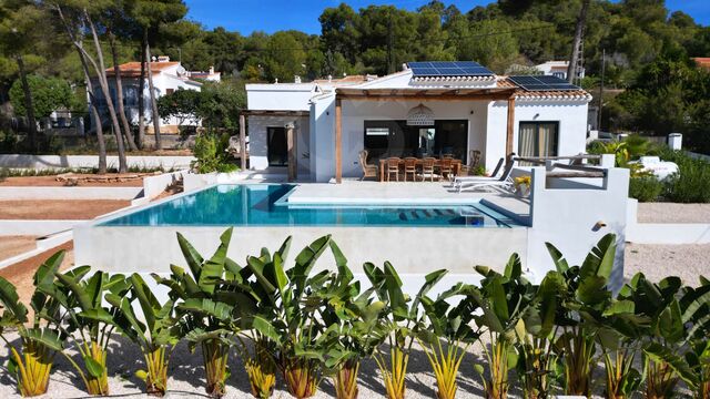 La cocina de diseño, con una distribución inteligente y electrodomésticos de alta gama, se abre directamente a una terraza soleada, perfecta para comer al aire libre y recibir invitados. Todo ello con vistas a una impresionante piscina infinita de estilo resort de 13 x 3,5 metros con vistas a la isla de Portitxol. Una cocina exterior y una zona de barbacoa crean el ambiente perfecto para el entretenimiento, mientras que las terrazas y la Naya cubierta proporcionan sombra y opciones para tomar el sol.