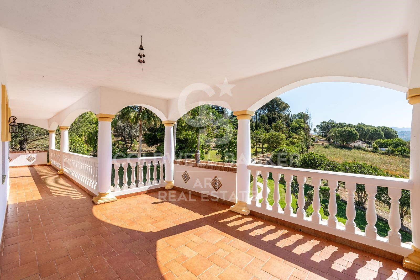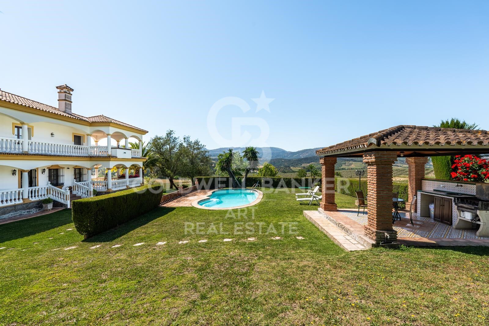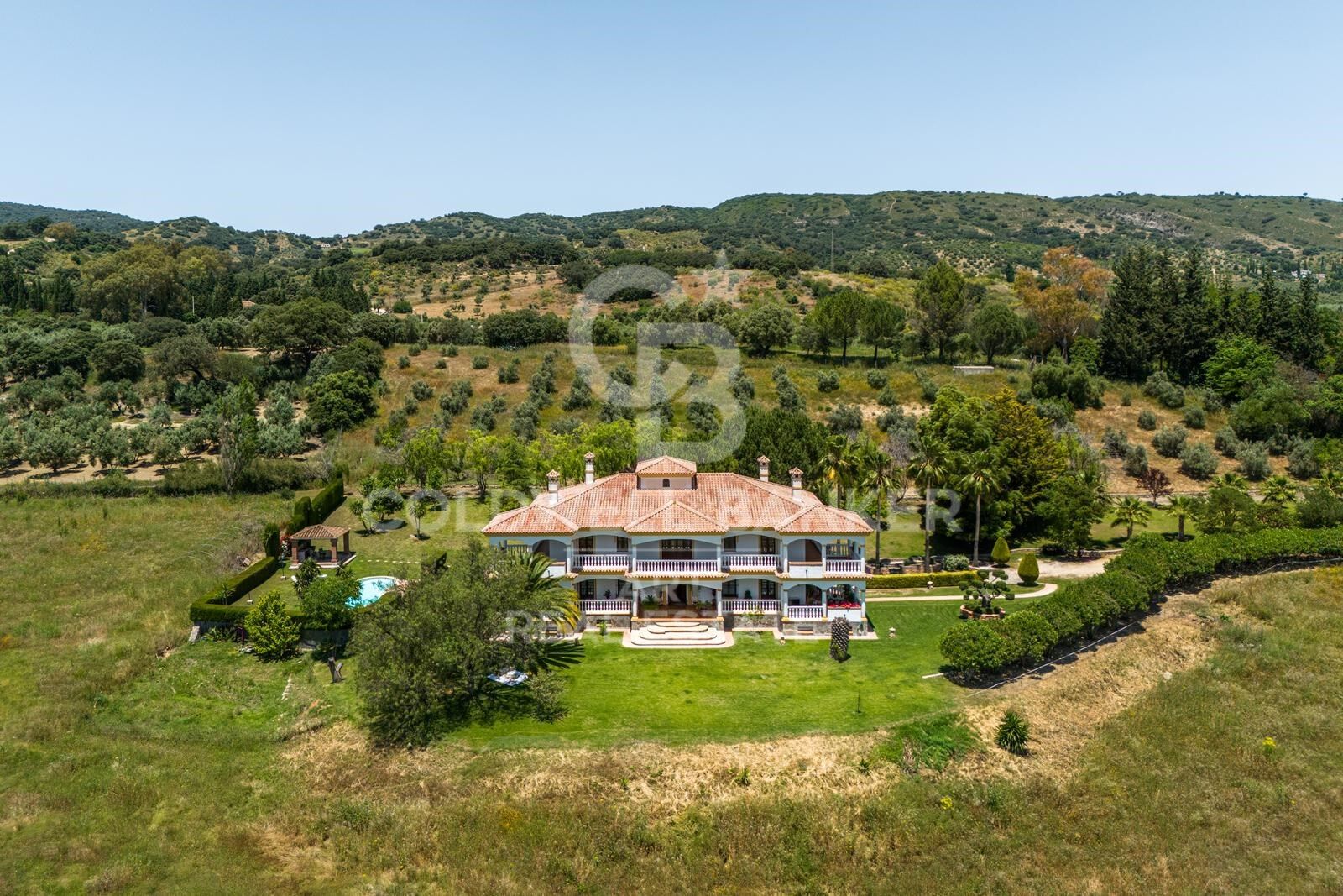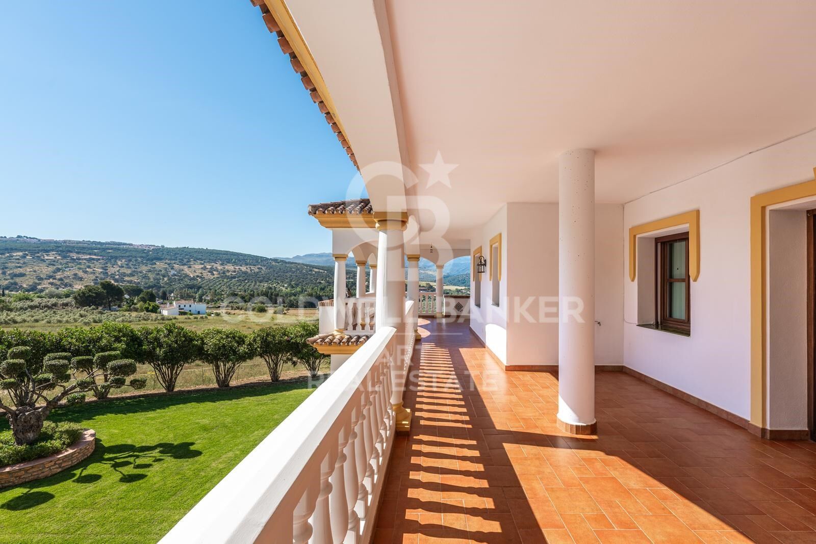 Este impresionante y verdaderamente único cortijo se encuentra en pleno campo andaluz, rodeado de colinas onduladas y con vistas panorámicas sin obstáculos. A tan solo 14 km del histórico pueblo de Ronda, la finca abarca aproximadamente 280.000 metros cuadrados de terreno e incluye su propio viñedo y olivares. Construida con los más altos estándares, la propiedad cuenta con unos 800 metros cuadrados de superficie construida, organizados alrededor de un magnífico patio central que recuerda a una hacienda tradicional. Esta residencia señorial ofrece múltiples posibilidades para el comprador: desde una ligera reforma hasta una completa transformación en un refugio verdaderamente espectacular. En el interior, un amplio hall de entrada recorre toda una ala de la casa, conectando con el salón principal, dos grandes salas de estar adicionales y la suite principal, todas con puertas francesas que se abren a una espaciosa terraza trasera. También cuenta con una gran cocina con comedor, área de servicio y cuatro dormitorios más, todos en suite y con acceso desde el patio central. La casa dispone además de una impresionante biblioteca, nueve chimeneas y conexión a internet de alta velocidad. El exterior no se queda atrás: jardines cuidados, una pérgola para comer al aire libre, amplias zonas verdes y una gran terraza que recorre toda la parte trasera de la propiedad. Majestuosas escaleras conducen a un jardín formal, mientras que una piscina de 16 metros por 6, con una profundidad central de 2,2 metros, completa este espectacular entorno ideal para el descanso o el entretenimiento. #ref:CBSH882