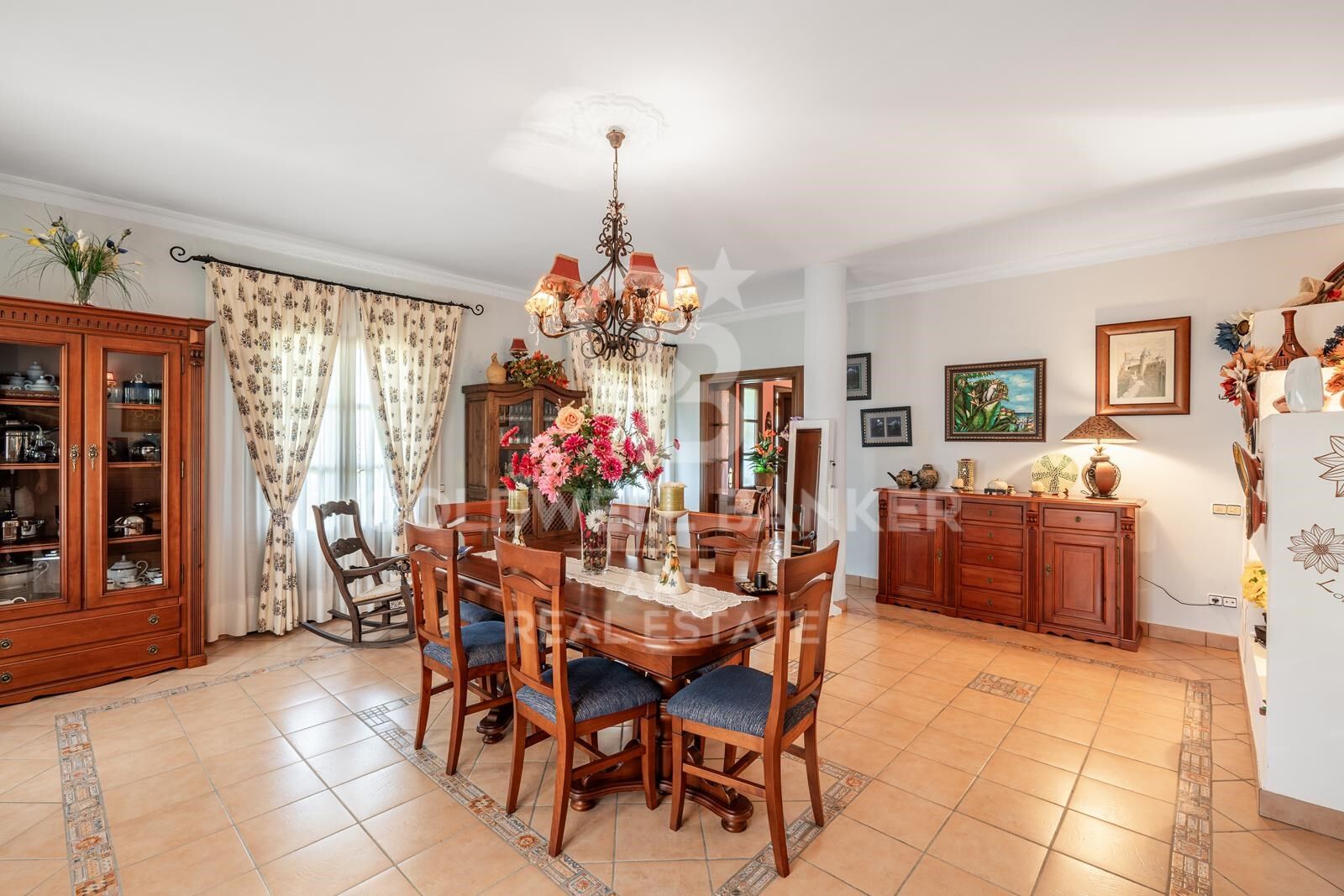 En el interior, la vivienda dispone de cinco dormitorios, incluyendo una amplia suite principal con vestidor y baño en suite. Hay además cuatro baños adicionales y un aseo de cortesía. Los interiores destacan por sus elementos artesanales, techos altos y una paleta de colores naturales que armoniza con el entorno. La calefacción está instalada en toda la casa y existe preinstalación para energía solar. Gracias a su orientación e impecable aislamiento, la casa mantiene una temperatura estable todo el año, sin necesidad de aire acondicionado.