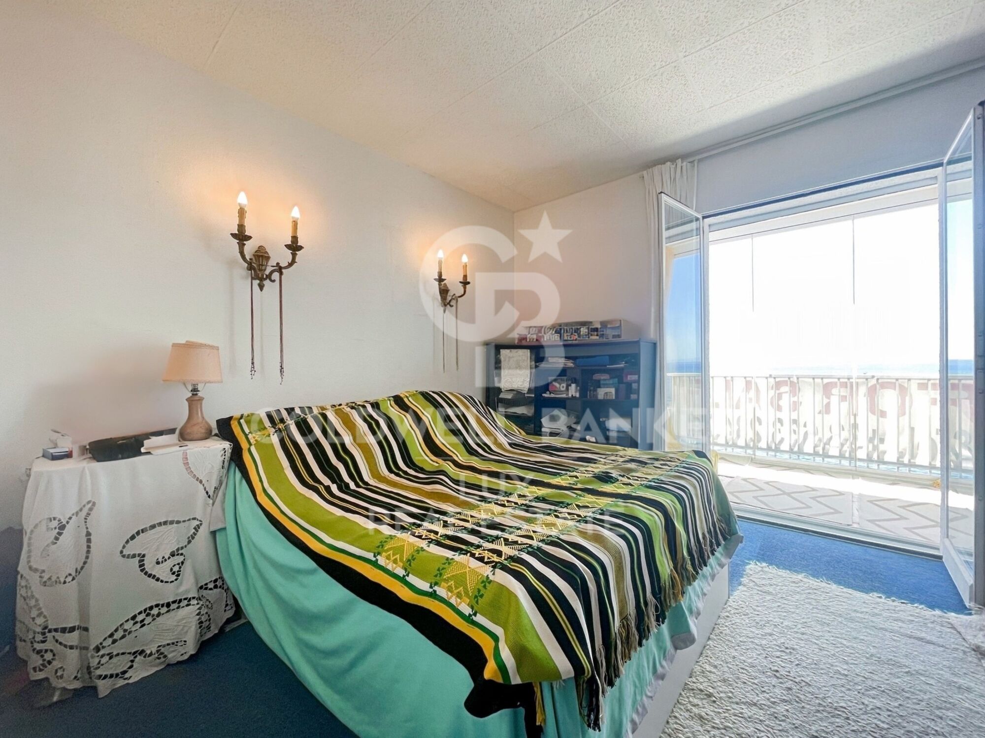 El apartamento se abre con un elegante hall de entrada que da paso a dos amplias habitaciones, ambas con vistas al mar. Además, cuenta con un baño completo independiente y una suite principal que incluye un baño privado y acceso directo a la terraza.