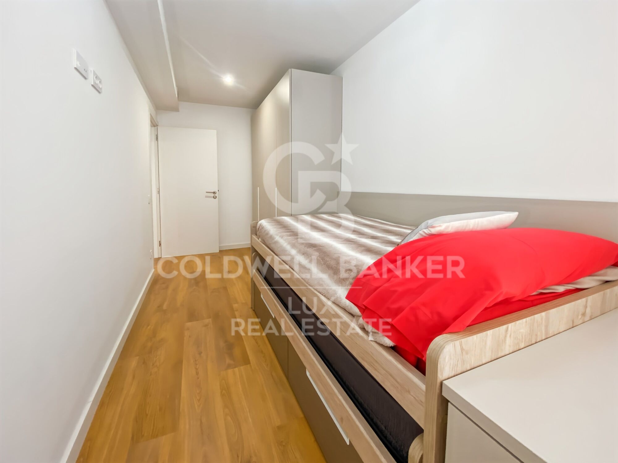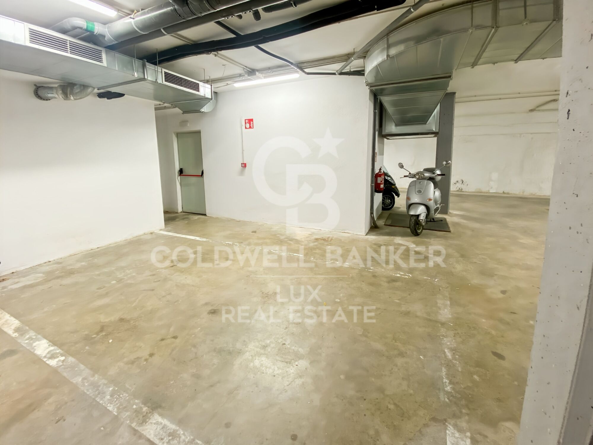 El apartamento cuenta con acabados de alta calidad, como aerotermia, aire acondicionado centralizado, sistema de alarma, ascensor para vehículos y acceso directo a una plaza de aparcamiento privada dentro del edificio.