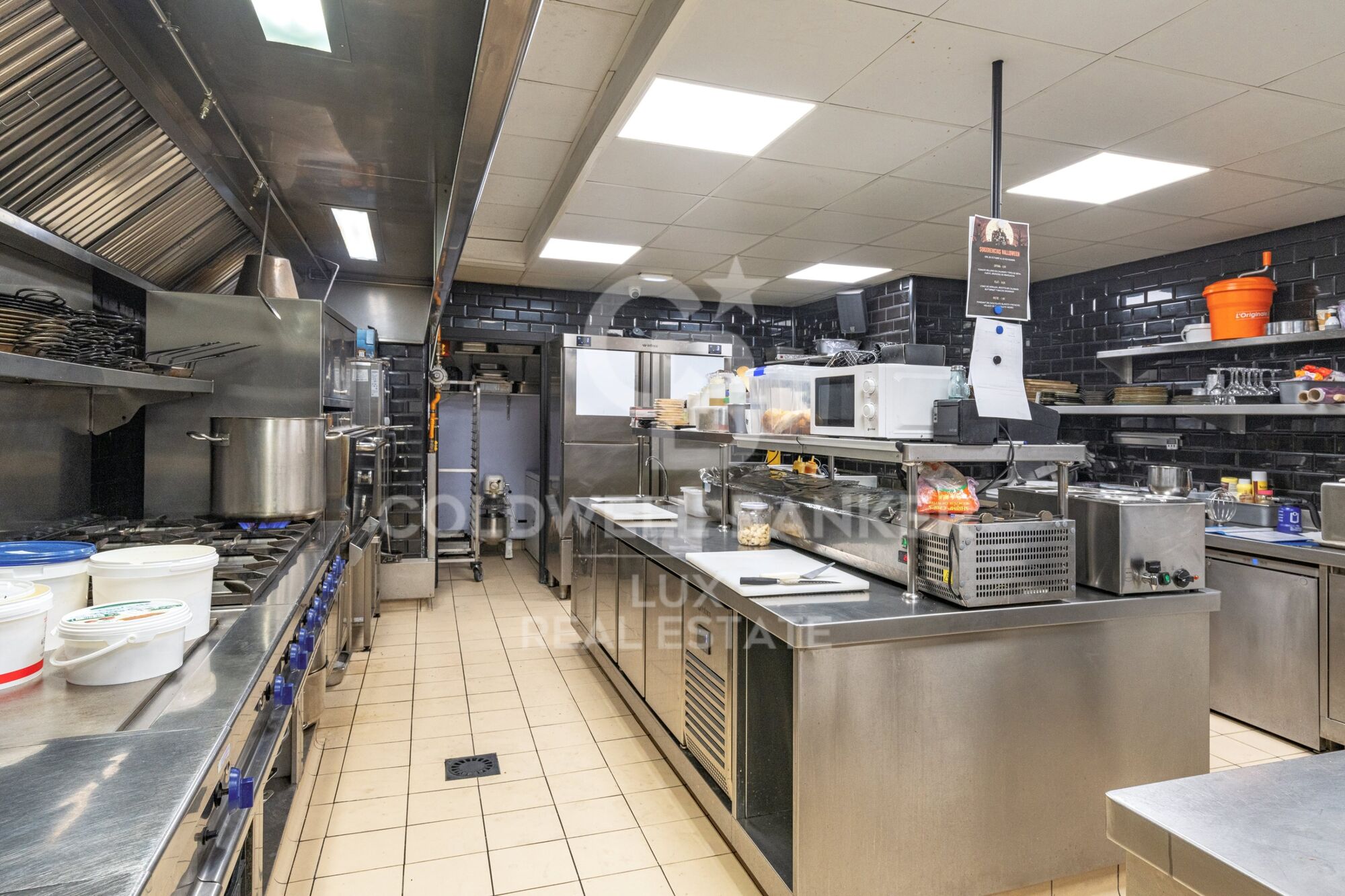 El restaurante fue reformado en 2020 (electricidad, fontanería, extracción, ventanales....). La cocina es nueva, alicatada y totalmente equipada con un horno Rational y un horno de brasa Mibrasa (lista de equipos a petición).