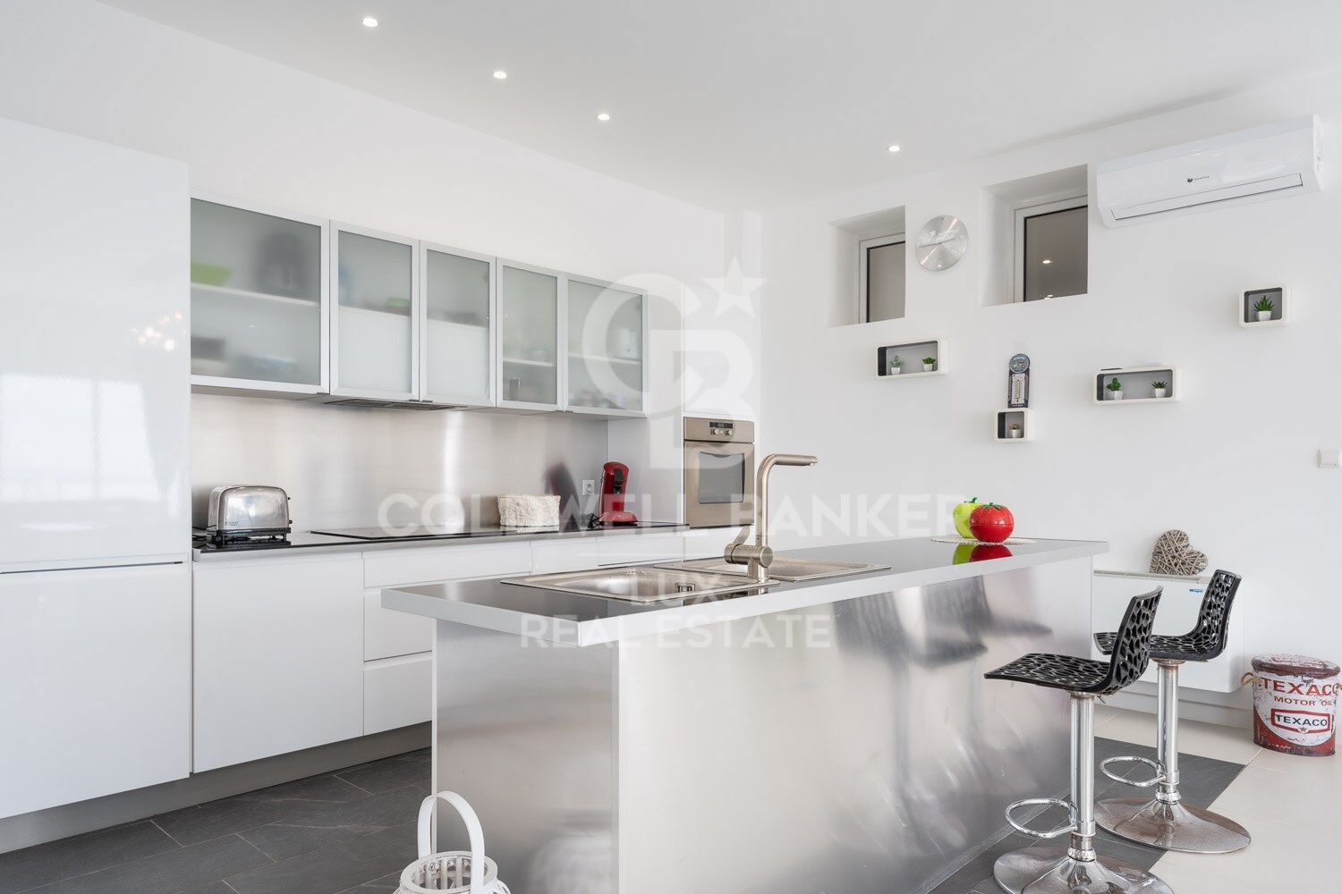 En el exterior, un jardín florido, una piscina resplandeciente, rincones sombreados... Tres garajes cerrados completan esta villa en venta en Cataluña, Roses.