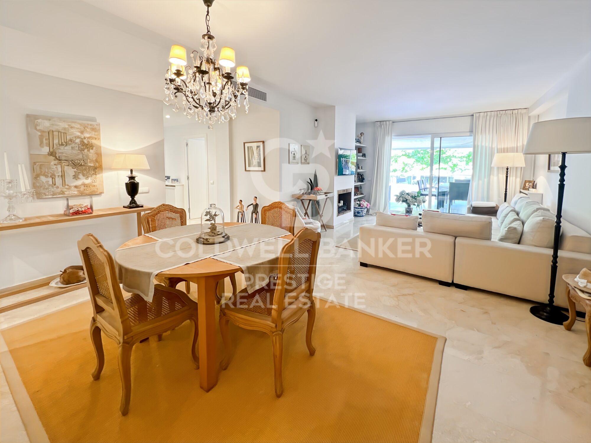 La vivienda, reformada íntegramente hace un año, ofrece una superficie construida de 118m² distribuidos de manera funcional y equilibrada. Dispone de tres dormitorios, uno de ellos en suite, y dos baños completos. El salón-comedor se conecta directamente con una amplia terraza privada, proporcionando una transición fluida entre el interior y el exterior. La cocina, independiente y completamente equipada, combina diseño y funcionalidad.