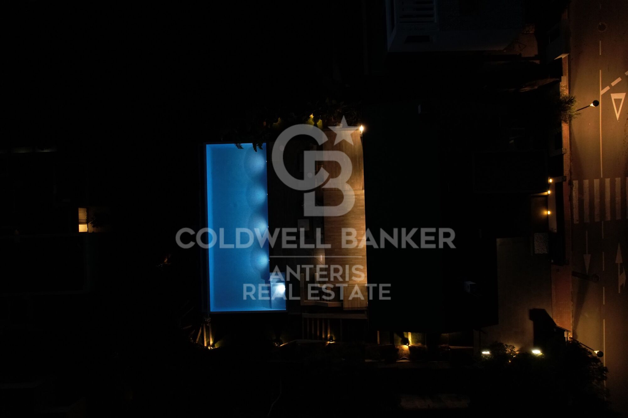 El edificio se distingue por sus grandes ventanales que inundan de luz cada rincón, especialmente en la planta principal, donde encontramos un espacioso salón comedor y una cocina de diseño totalmente equipada con electrodomésticos de alta calidad, desde donde se accede a otro comedor de diario. Toda la planta da acceso a una amplia terraza con impresionantes vistas.