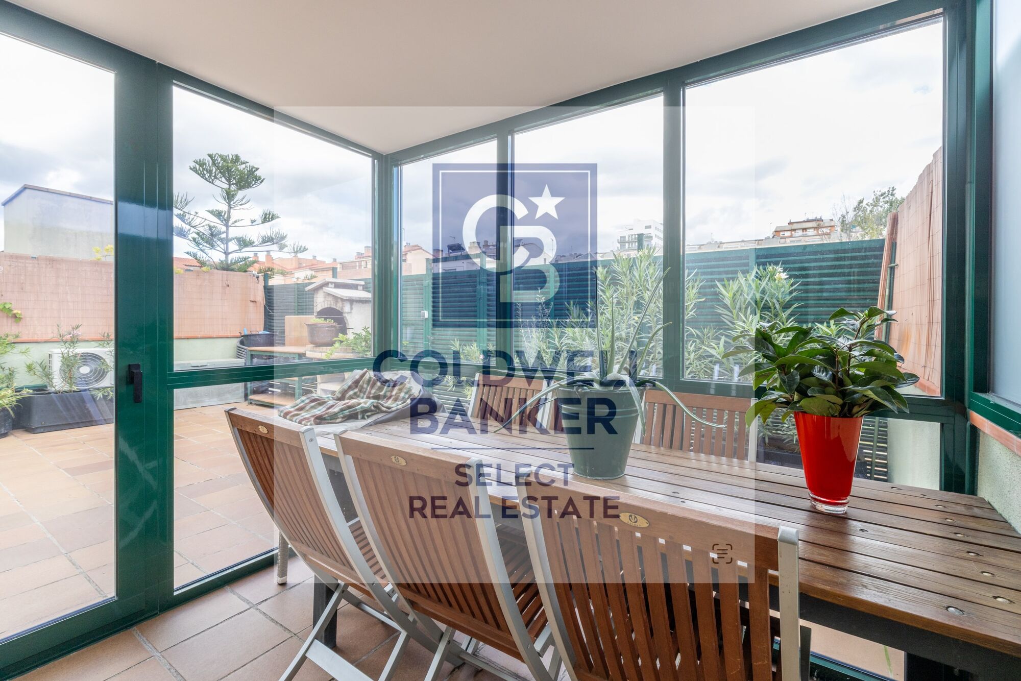 Dispone también de un patio exterior privado, ideal para cenas al aire libre o zona de juego para los pequeños de la casa. En la terraza hay una sala hecha con cerramientos.