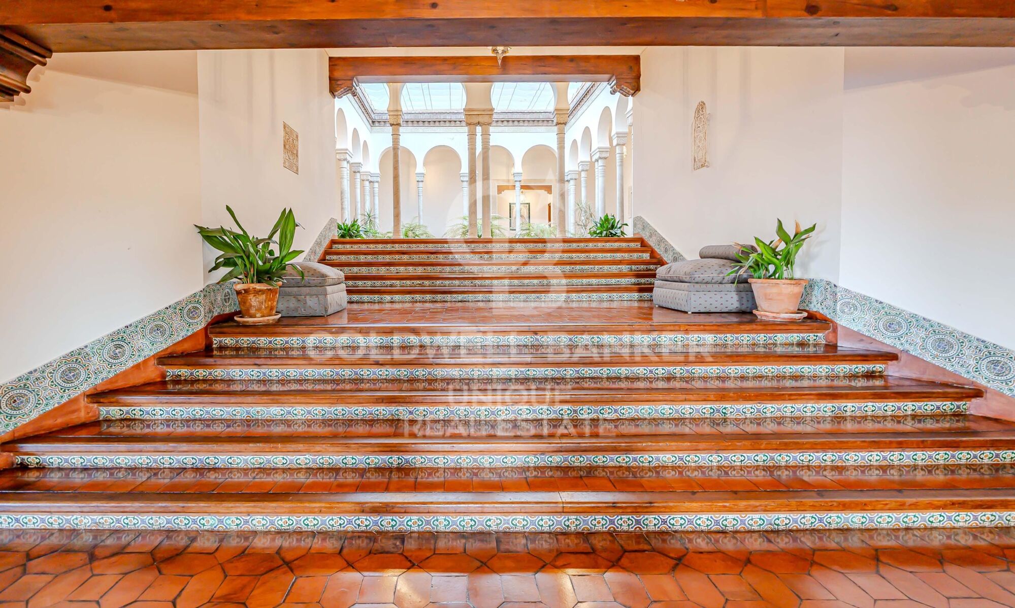 Sumérgete en el oasis de tranquilidad que ofrece su magnífico patio andaluz, adornado con columnas y alicatados originales del prestigioso Palacio de Larios de Madrid, un tesoro histórico que añade un toque de autenticidad y elegancia sin igual. Las puertas de madera maciza del siglo XVIII, junto con los materiales de primera calidad y los acabados excepcionales, resaltan el cuidado por el detalle y la excelencia en cada aspecto de esta residencia única.