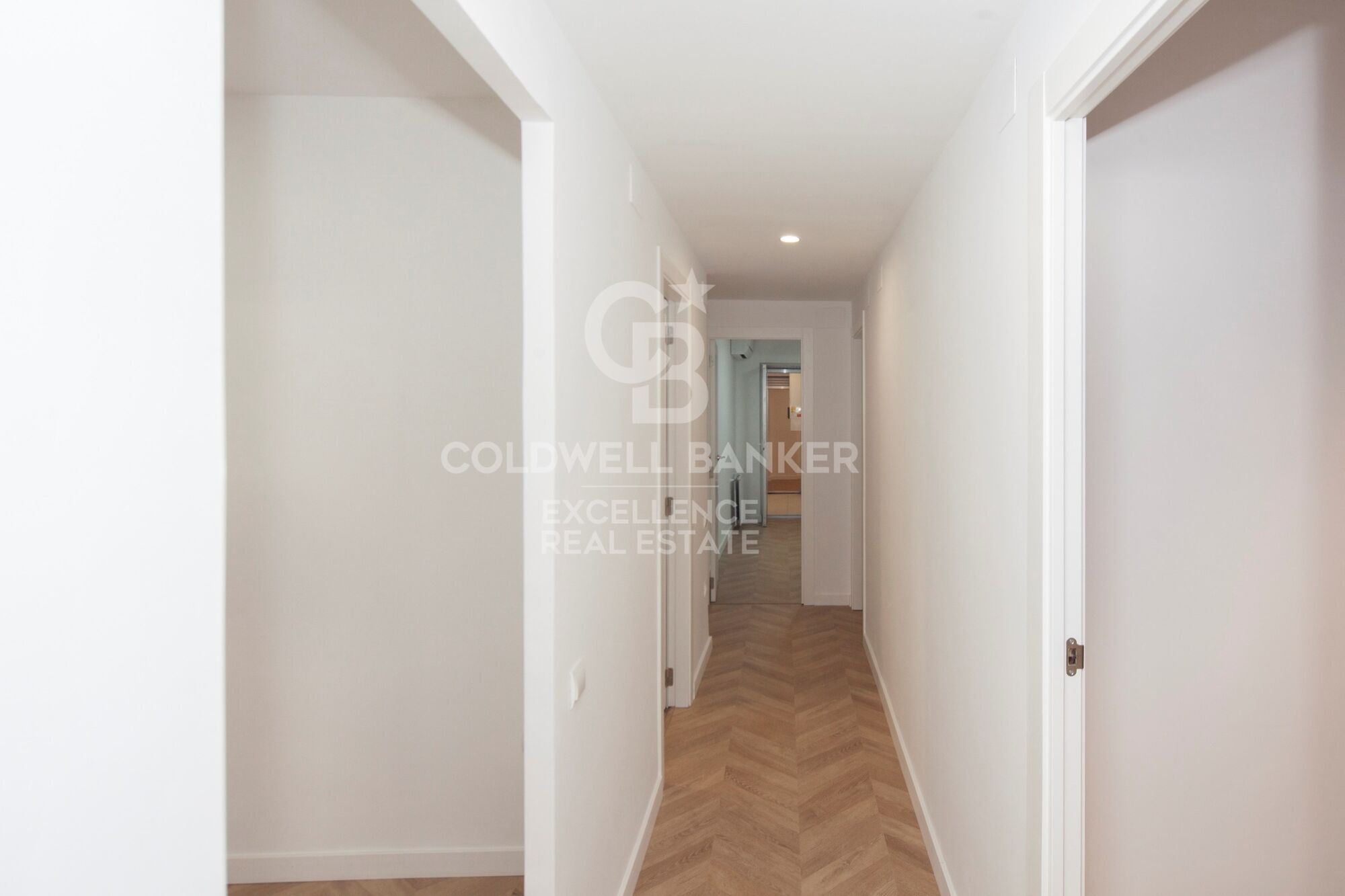 La vivienda ha sido renovada íntegramente con materiales de alta calidad y un diseño actual, priorizando la elegancia y la practicidad. Su cuidada distribución, con mínima presencia de pasillo, maximiza el aprovechamiento del espacio y transmite una agradable sensación de amplitud.
